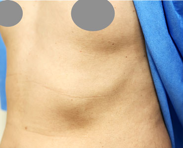 この張り出しは6番や7番、もしくは7番や8番、もしくは6~8番の肋軟骨が原因ですので、これを取り除けば改善します。通常4本(2対)、少なくて2本(1対)、多くて6本(3対)除去することになります。