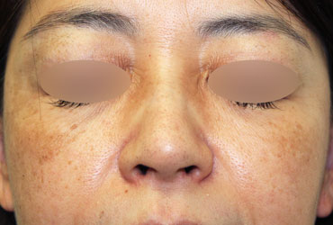 目の下から頬にかけて広がっていたそばかすと肝斑(かんぱん)を治療しました。この症例はフォトフェイシャルm22を受ける4カ月前から美白内服の服用を開始し、併用してシミ・美肌治療を行っています。6カ月後の経過ですがシミ、そばかす、肝斑(かんぱん)が薄くなり、肌質も良くなっています。このように美白内服の併用も可能です。