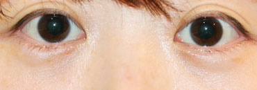他院で施術された後、当院で修正を希望された症例です。特に目を上げると下まぶたのたるみが残っているのが認められます。当院で経結膜下脱脂法を行い、下まぶたのたるみが無くなったことで目元がスッキリしました。