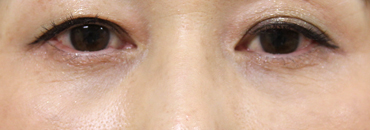 50代の患者様ですが、本来は下眼瞼除皺術の適応になります。経結膜下脱脂を行っても、皮膚が余ってしまい、シワができる可能性があるからです。しかし、患者様が皮膚表面の切開を希望されなかったので、今回は皮膚表面を切開せずに、まぶたの裏側から経結膜下脱脂法を行いました。意外にもたるみが目立たなくなり、すっきりした目元になりました。