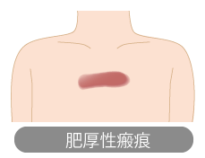 傷の範囲を超えずに赤く盛り上がります。数カ月で赤みが引き、平らになります。肥厚性瘢痕は待てば改善しますが、改善しない場合は手術を行います。