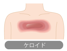 よく赤く盛り上がった傷をケロイドと勘違いしている方が多いのですが、そのほとんどが肥厚性瘢痕です。ケロイドは好発部位があり、耳、肩、上腕、前胸部、下腹部で、原則として顔面には生じません。またケロイドの最大の特徴は傷の範囲を超えて広がっていくこと。たとえば「帝王切開の跡が広がって痛みがある」、「胸にニキビができて大きくなった」、「BCGの跡がつながり大きくなった」などという場合はケロイドです。