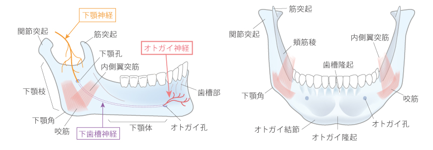 - ●両下顎体部に生じる段差を削って整えます。オトガイ神経を傷つけないこと、顎二腹筋や顎舌骨筋の剥離を最小限にすることがポイントとなります。